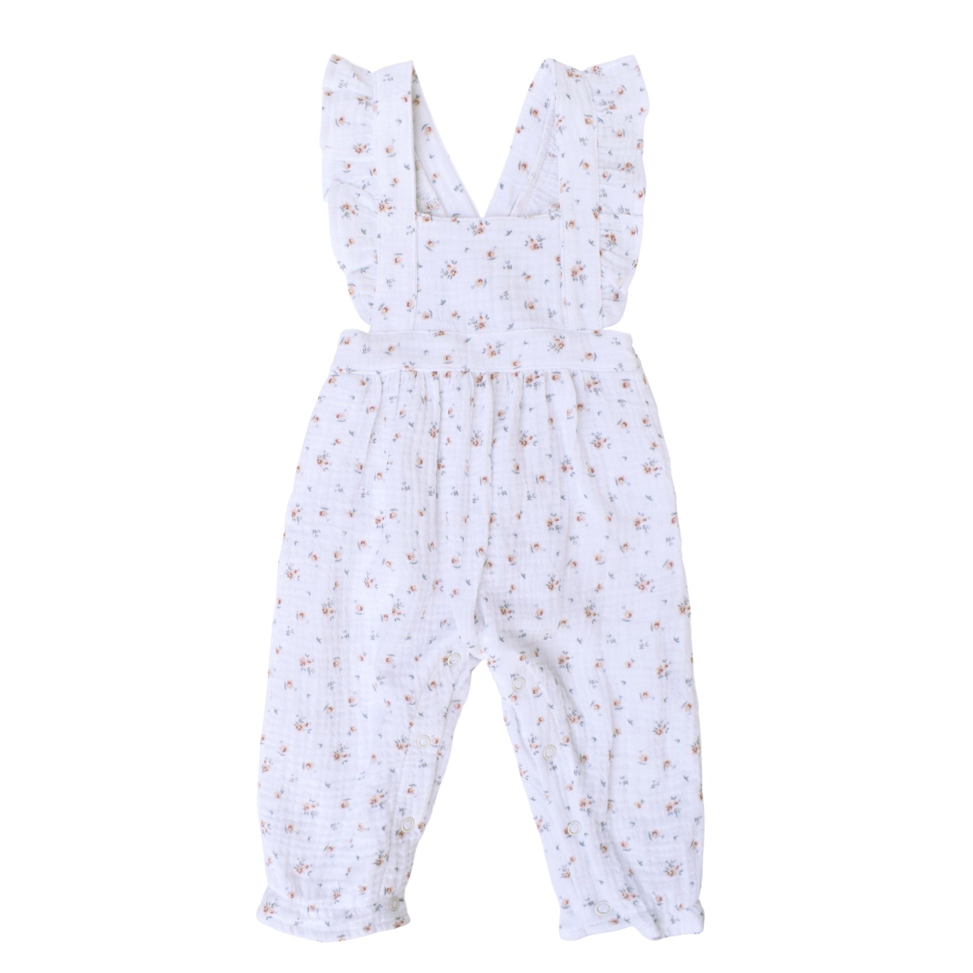 La Jardinera Cádiz es una prenda confeccionada en suave muselina de algodón100%, pensada para ofrecer comodidad y frescura durante todo el día. Presenta un delicado estampado floral de estilo sutil y atemporal, que aporta un encanto clásico y muy dulce. Su diseño incluye tirantes anchos con volantes que cruzan en la espalda, creando un acabado elegante y artesanal. La cintura ligeramente fruncida proporciona un ajuste cómodo y favorecedor, mientras que los botones a lo largo de las piernas facilitan el cambio y añaden un toque práctico sin perder estilo.