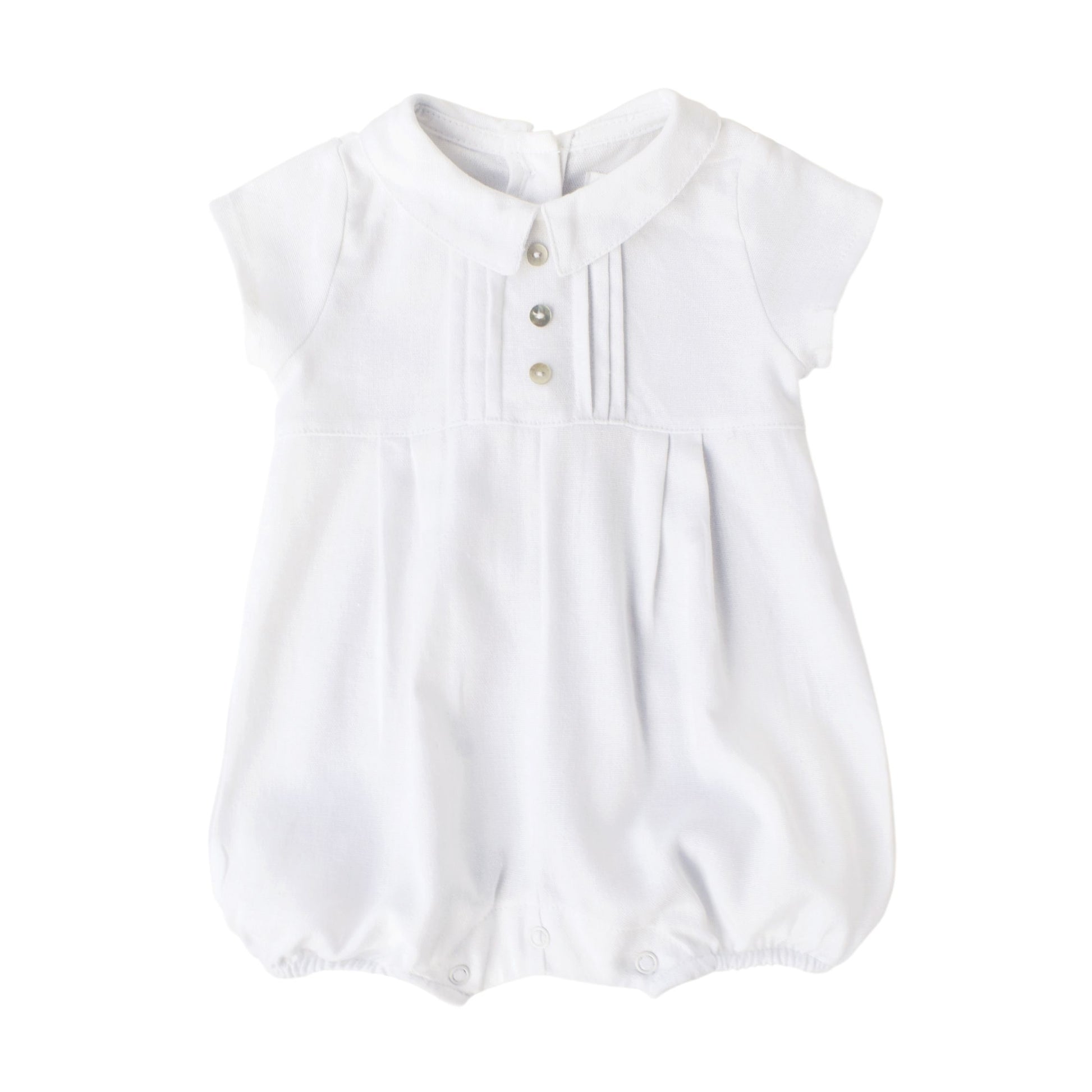 Su diseño clásico con cuello bebé, botones decorativos y fruncido inferior aporta un toque tradicional y encantador. Perfecto para mantener la comodidad y el estilo de tu pequeño.