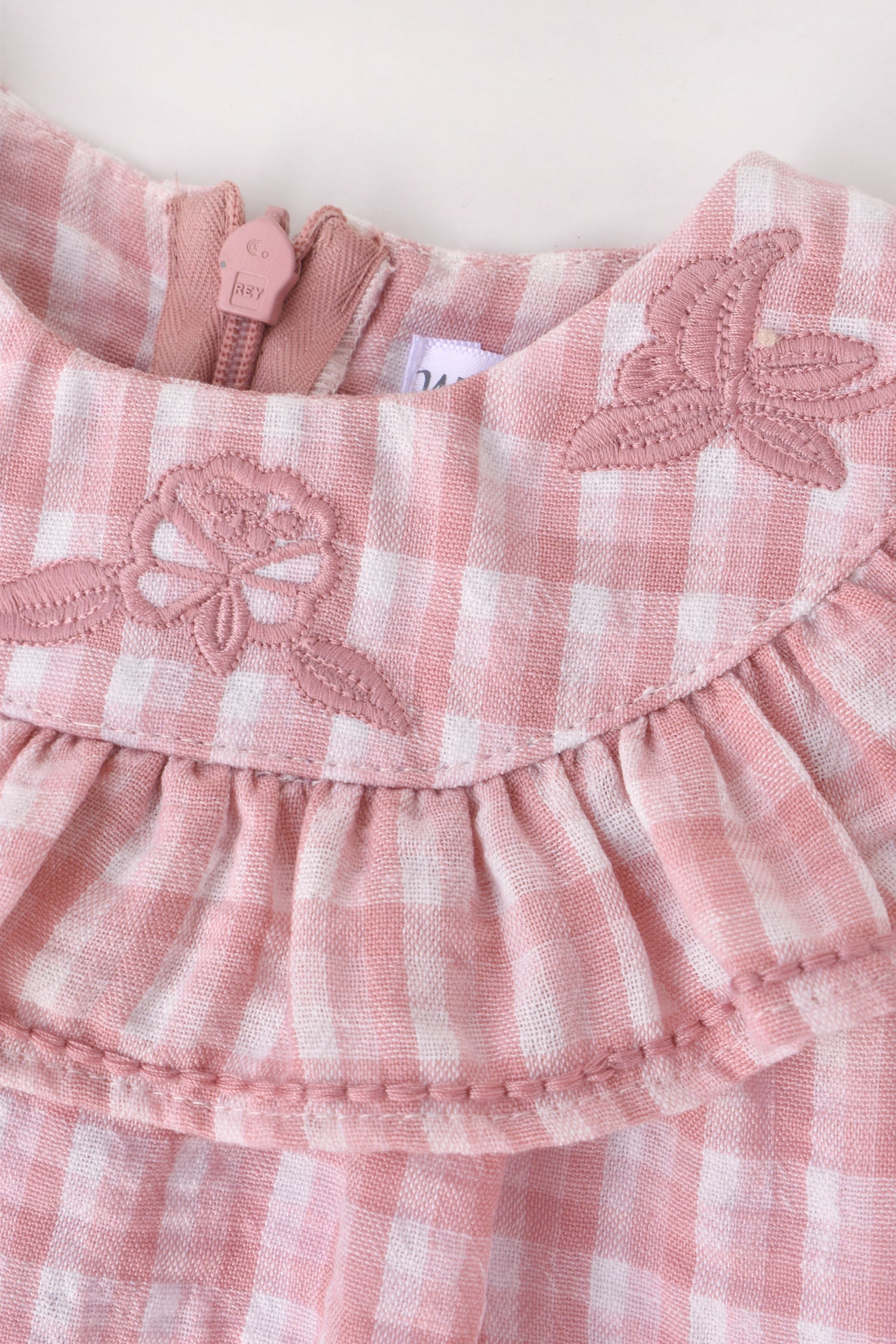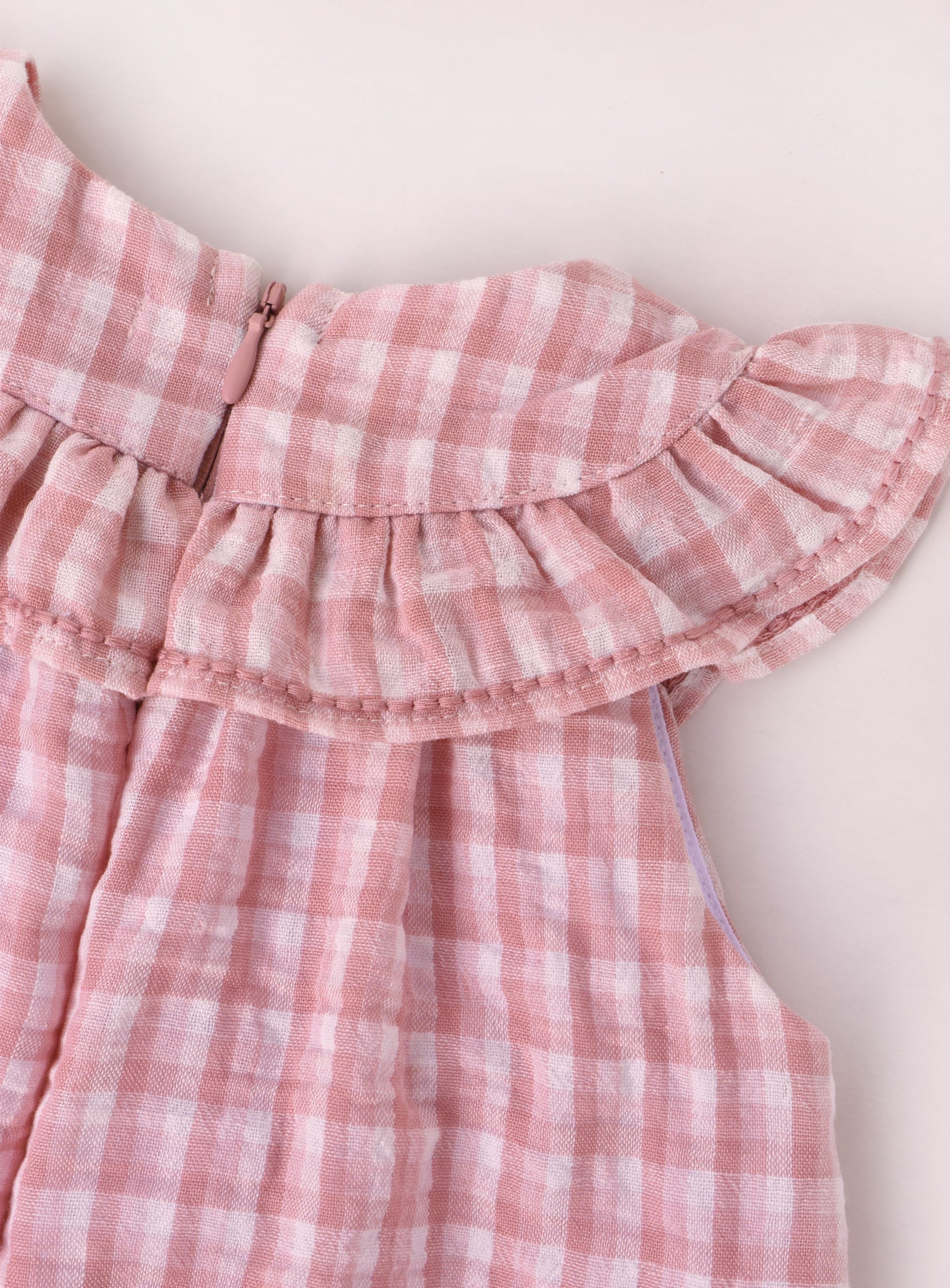Warmi Vestido Josefa lino Cuadrille Palo Rosa